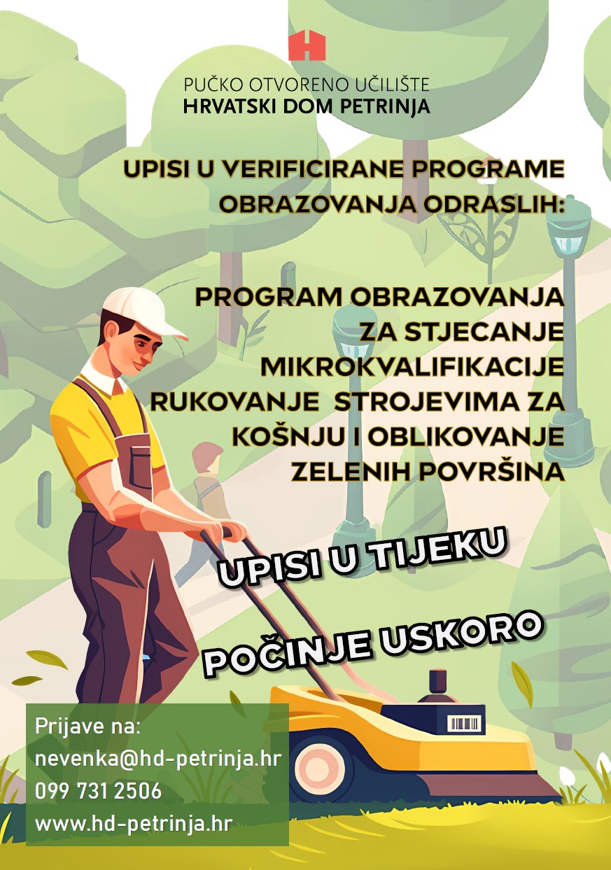 Pučko otvoreno učilište Hrvatski dom Petrinja javna je ustanova koja spaja kulturu, umjetnost i obrazovanje odraslih. Kroz bogat program radionica, izložbi, koncerata i edukacija doprinosimo kulturnom i društvenom životu Petrinje i šire zajednice. U sklopu učilišta djeluju Galerija “Krsto Hegedušić”, Centar za mlade “Laura”, Folklorni ansambl “Petrinjčica”, Petrinjski puhački ansambl, dramski studio te kabinet za psihološku podršku u zajednici. Naše aktivnosti temelje se na vrijednostima znanja, kreativnosti i uključivosti.