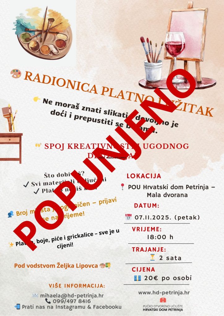 sva mjesta za radionicu Platno i užitak su uspješno popunjena! 🧡